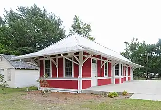 Southern Railway Depot, also known as the Batesburg Boy Scout Hut, is a historic train station located at Batesburg-Leesville, Lexington County, South Carolina. It was built about 1900 by the Southern Railway, and is a one-story weatherboarded frame building with a bellcast hip roof. It has patterned metal shingle roofing and sawn wooden brackets supporting the deep eaves. It was relocated from its original location to its present site about 1960 and used as a meeting place for local Boy Scouts.[2][3]