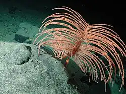 | Feather pen-like coral (Bathypathes sp.) at 2467 meters water depth. California, Davidson Seamount | |
