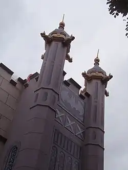 The ride system used for Batman Adventure – The Ride was developed by California-based McFadden Systems, Inc., who specialised in motion platforms for military-style flight simulators.[12][29][30] Batman Adventure – The Ride was the company's first amusement ride.[29] The ride system was controlled by ASI systems from Anitech Systems Inc.[31] Guests were admitted into one of six vehicles which each seat 20 riders.[32] Each of these vehicles were mounted on motion bases which allow six degrees of freedom.[32] The theming was designed by Village Roadshow Theme Parks and Sanderson Group.[5][6] Alan Griffith Architect formed a strong working relationship with Warner Bros. International Recreation Enterprises on the ride.[33] The audio-animatronic Batman featured in the ride's pre-show was built by Showtronix, designed by Greg McKee, Matt Ward, John Cox and Chris Chitty. They had designed a demonstration Bugs Bunny animatronic in 1989, which won them the multi-$1,000,000 contract to design the animatronics for Warner Bros. Movie World, including the Batman animatronic.[34][35][36][37][38] The animatronic Batman in Batman Adventure – The Ride 2 was built by Vertex Productions, designed by Robin Hall.[16][39]