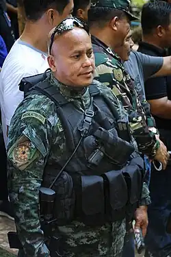 Ronald Marapon dela Rosa (born January 21, 1962),[3] known by his nickname Bato,[2] is a Filipino politician and retired police officer who has served as a senator of the Philippines since 2019. He served under the Duterte administration as the chief of the Philippine National Police (PNP) from July 1, 2016 to April 19, 2018, overseeing the government's war on drugs.[4] He also served as director general of the Bureau of Corrections from April 30 to October 12, 2018.