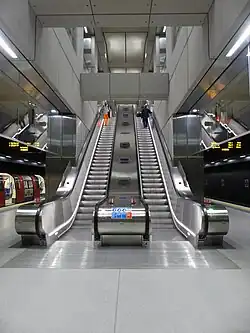 The station was designed and built by a joint venture between Laing O'Rourke and Ferrovial Agroman,[16][17] with station entrance architecture by Grimshaw.[18] The station design allows for the future installation of platform screen doors.[19][20]