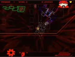 The game uses twin-stick shooter controls with support for other control peripherals.[3][4][5] The left joystick controls the on-screen ship while the right controls the direction the ship's weapon fires. Each stage is a single screen populated with a large number of enemies and obstacles that are harmful to the ship.[4][5] Players have to protect the four function pods from being rewritten by the programmers and failing to do so results with Terminus entering the stage to harm the ship.[4][5] Succeeding in destroying Terminus grants bonus points after completing the stage, however, he nevertheless returns in the next stage.[4] Players can also collect items like upgrades for the main weapon, secondary weapons and temporary power-ups.[5]