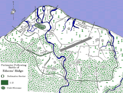 U.S. Marine and Army forces were under the overall command of Major General Alexander Vandegrift. However, on the 23rd of October, Vandegrift had flown to Noumea, New Caledonia to meet with Vice Admiral William Halsey Jr., at Halsey's direction.[29] Major General William Rupertus, who was Deputy Commander of the 1st Marine Division, remained in Guadalcanal and commanded the U.S. forces on the ground in Vandegrift's absence.[30]