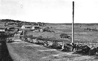 Since late February, the battle was concentrated in the village of Ahvola, about 5 kilometres (3.1 mi) west of the railway. The Reds attacked the White lines daily at 9 AM and then pulled back to their own trenches as the sun set.[1] During this nine-week period, both sides lost approximately 20 men dead or wounded each day. The village of Pullila, 5 kilometres (3.1 mi) east of the railway, was held by the Reds. The Whites unsuccessfully attacked the village a couple of times.[2]