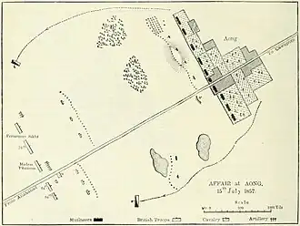 ![]() Affair at Aong, 15th July 1857 (map from Cassell's Illustrated History of India, Volume 2, 1879) | |||||||