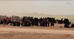 By the morning of 11 February, another 1,500 civilians had fled the area in a column of 17 trucks filled with men, women, and children, some identifying as Iraqi.[70] Hundreds of civilians continued to stream out of the enclave into SDF-Coalition makeshift screening centers established for filtering out fleeing jihadists. One YPG commander stated that some desperate IS militants would resort to wearing women's clothing when fleeing. "[IS fighters] have been trying to escape in women's clothes," the commander said, that "some of them dress as women because we don't ask the women to raise their hijab."[71]