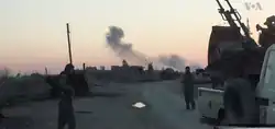 IS began deploying VBIEDs using cars, motorbikes, and bicycles against SDF positions on the night of 2 March, several of which were subsequently destroyed by both Coalition air raids and SDF snipers and rockets; IS also shelled approaching ground forces.[120] An airstrike on a reported ammunition depot set off a large explosion, causing a smouldering fire that led to continued secondary explosions into the next day, filling the sky with smoke. By the end of 2 March, SDF forces had made limited advances, capturing six tactical points and a hill overlooking the main IS camp.[121][122] By 3 March, the SDF reportedly had 160 machine gun units stationed at 50 meter intervals along the front line as sporadic gunfire and SDF mortars and artillery continued to shell the camp. With IS offering stiff resistance during the daytime, the SDF largely advanced and conducted closer-range combat after nightfall under the support of U.S. helicopters and warplanes; the dug-in jihadists were "outgunned" and did not have night vision, according to the SDF. The SDF had lost three fighters and had captured 13 to 14 points by the end of 3 March, according to a commander.[123][124][125] The SOHR cited local reports alleging that U.S. elements had deployed white phosphorus incendiary munitions in Baghuz; the deliberate use of the weapon in the presence of civilian areas is banned by the Convention on Certain Conventional Weapons. A Coalition spokesman flatly denied the allegations.[126]