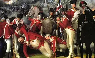 On the morning of 12 June, Nugent, with a column of roughly 2,000 government soldiers (drawn from the Monaghan Militia, Fifeshire Fencibles and the 22nd Dragoons) and six 6-pounder guns and two howitzers manned by the Royal Artillery, marched onto Saintfield, where it was discovered to have no rebel presence. Nugent's column, which was reinforced by detachments of the Argyll Fencibles and Downpatrick Yeomanry, moved onto Ballynahinch, where his men captured a rebel outpost before occupying the town. As the night began to set in, Nugent's artillery forces began to bombard Montalto and the nearby Ednavady Hill. Numerous rebels, many of them demoralised by the bombardment, slipped away under the cover of darkness.[1][2]