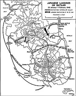 - ^ a b c d e f g h i j k l m n o p q r s t u v w x y z aa ab ac ad ae af Whitman, John (1990). Bataan: Our Last Ditch. New York: Hippocrene Books. pp. 11–50. ISBN 0870528777.