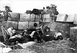On 10 May, Middleton established heavily defended gunpits and conducted a devastating, day-long shelling of the town. Attempted advances, however, were turned back by Métis fire, and no ground was gained. The next day, Middleton gauged the strength of the defenders by dispatching a contingent of men north along the enemy's flank while simultaneously conducting a general advance along the front. Having redirected a portion of their strength to hold the northward flank, the Métis lacked the manpower to oppose the Canadian thrust, ceding ground with little resistance. Canadian soldiers ventured as far as the Batoche cemetery before turning back. Satisfied with his enemies' weakness, Middleton retired to sleep and contended to take the town in the morning.[8][9]