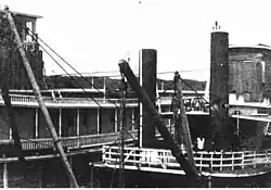 However, due to the difficulty of the terrain and Middleton's penchant for prudence, his ground troops lagged behind schedule. When the Northcote appeared adjacent to the town on 9 May it was spotted by Métis rebels who had not yet come under fire from the advancing ground troops. The rebels' small arms fire did little damage because of the improvised armour that protected the large boat. They lowered Batoche's ferry cable, and the Northcote steamed unsuspectingly into it, slicing off its masts and smokestacks. Crippled, the ship drifted harmlessly down the South Saskatchewan River and out of the battle.[8][9]