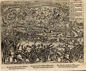 ![]() Depiction of the battle by Wilhelm Peter Zimmermann, published in 1603 | |||||||||