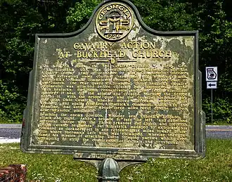 The Battle of Buckhead Creek (also spelled as Buck Head Creek) or Battle of Reynolds' Plantation[2] was the second battle of Sherman's March to the Sea, fought November 28, 1864, during the American Civil War. Union Army cavalry under Brig. Gen. Hugh Judson Kilpatrick repulsed an attack by the small Confederate cavalry corps under Maj. Gen. Joseph Wheeler, but abandoned its attempt to destroy railroads and rescue Union prisoners of war.