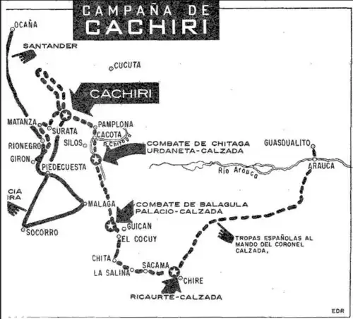- ^ Riaño, Camilo.(1966) «La batalla de cachiri», Revista de las Fuerzas Armadas, (37), pp. 36. doi: 10.25062/0120-0631.3107.