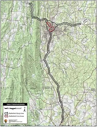 The growth of the City of Dalton has destroyed the battlefield landscape and its historic setting.[5]