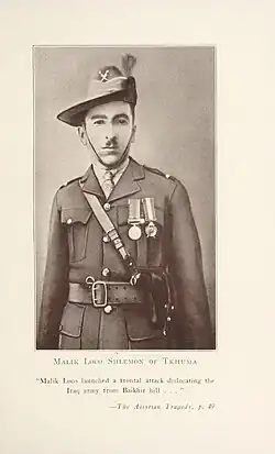 - ^ a b c Ismael, Yaqou Bar Malik (2020-11-13). Assyrians and Two World Wars: Assyrians from 1914 To 1945. Independently Published. p. 223. ISBN 979-8-5640-9983-7.