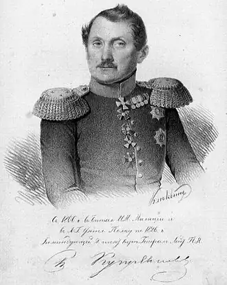 Chief of staff: General of the Artillery Mikhail Dmitrievich Gorchakov
