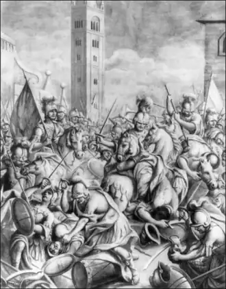 The Battle of Forlì in 1282 took place between an army recruited in France, sent by Pope Martin IV in an attempt to subdue Forlì and the Ghibellines. The Guelph army was defeated thanks to the strategic ability of Guido I da Montefeltro.