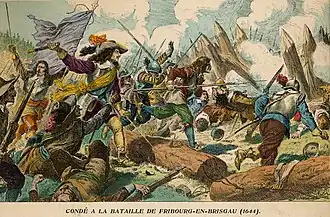 The Battle of Freiburg, fought over three days on 3, 5, and 9 August 1644, took place during the Thirty Years' War, near Freiburg im Breisgau, now in Baden-Württemberg. A French army of 16,000, led jointly by Condé and Turenne, sought to relieve the town, which had recently surrendered to a Bavarian force under Franz von Mercy. In what has been described as the bloodiest battle of the war, around half of the French soldiers engaged were killed or wounded, with the Bavarians losing up to a third of theirs. The French claimed victory since Mercy was forced to withdraw, but the result is disputed.