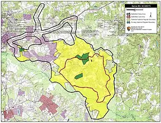 The only preserved portion of the Gaines' Mill battlefield for nearly 150 years was a 60-acre section of the battlefield under National Park Service control around the Watt House. This tract is only a small fraction of the more than 2,000 acres that comprises the battlefield.[22]