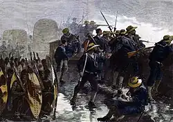The Battle of Gingindlovu (uMgungundlovu) was fought on 2 April 1879 between a British relief column sent to break the Siege of Eshowe and a Zulu impi of King Cetshwayo.