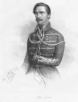 General Richard Guyon, commanding the Hungarian IV Corps at Kishegyes, had reportedly been alerted to the impending attack. Historian József Bánlaky claims Guyon hosted a champagne party to feign complacency, deliberately withholding patrols while positioning his troops in darkness with weapons ready to ambush the Austrians.[2] Conversely, historian Róbert Hermann contends Guyon omitted patrols due to underestimating the likelihood of an assault.[5] Guyon's force consisted of 61 infantry companies, 14 cavalry companies, 1,485 horses, 46 cannons, and approximately 8,360 soldiers. Notably absent was Major General György Kmety's division (6,603 troops with 37 infantry companies, 8 cavalry companies, 832 saddle horses, and 17 cannons), which remained en route to Kula during the battle.[1] Jelačić, by contrast, marched with 112 infantry companies, 30 cavalry companies, 4,923 horses, 73 cannons, and 17,994 troops, significantly outnumbering Guyon's contingent.[1]