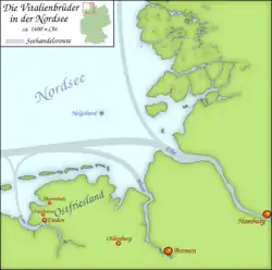 Brommy initially remained outside of Heligoland's waters, hoping to catch Valkyrien if it left the safety of British neutrality.[8] but by around 14:30, three Danish warships—the frigates Rota and Thetis and the steamer Gejser—approached the area to come to Valkyrien's aid. The appearance of the three Danish warships prompted the Germans to withdraw back to port. The Danish ships pursued him, and at around 16:45, Gejser and Valkyrien opened fire on the retreating Germans. Rota and Thetis moved to block the Germans' path back to the Weser, forcing them to divert to the mouth of the Elbe.[9] After Brommy entered the Elbe and arrived at the port of Cuxhaven, the Danish ships laid off the river entrance to prevent him from making another attack on the blockade force.[4] The Danes thereafter reimposed the blockade of the North Sea coast.[10]