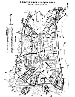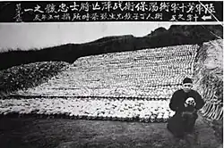 In the fighting at the airfield, two of the three battalions of the Chinese 54th Division fled, leaving only one battalion in position. General Fang sent the 570th Regiment of 190th Division to reinforce, but intelligence smuggled out by a spy hidden in the regiment helped the Japanese take the airfield quickly.[73] In the south, the small Chinese reconnaissance forces retreated from outposts to their main positions after brief skirmishes. On the night of the 25th, Lieutenant General Sakuma Tamehito (佐久间为人), commander of the 68th Division, moved his headquarters to Huangcha Hill (Chinese: 黄茶岭), the southernmost hill in Hengyang.[74] Early the next morning, he began an offensive, with air bombing and artillery shelling paving the way for infantry charges. The 30th Regiment of the 10th Division deployed at the frontline in the southern hills, especially the two forward positions, Mt. Gao (Chinese: 高岭) and Mt. Tingbing (Chinese: 停兵山), fought back hard. The two officers commanding the defense of Mt. Gao and Mt. Tingbing swore to "live and die with the stronghold". At the end of the day, about 600 Japanese soldiers lay dead at the foot of the two hills, and casualties for the Chinese company reached 50%.[75]