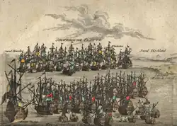 A part of the Swedish battlefleet, 12 ships of the line and 5 frigates under the command of Prince Charles, Duke of Södermanland, had set sail from Karlskrona on 9 June 1788. While Prince Charles had overall command of the fleet, he was assisted by Admiral Anton Johan Wrangel (the younger) and had the experienced naval officer Lieutenant Colonel Otto Henrik Nordenskjöld as his flag-captain. Already before the war had started, the fleet had intercepted a small Russian squadron of 3 ships of the line and 4 frigates headed for Denmark and demanded of these to salute his flag, which was in direct contradiction of the treaties of 1743.[8]
