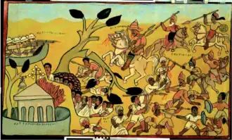 ![]() The battle of the Portuguese against Ahmed Gragn, painted by Hailu Woldeyes c. 1935 | |||||||