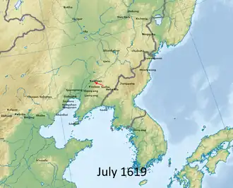 The Battle of Kaiyuan was a conflict between the Later Jin and Ming dynasty in the summer of 1619. Following the victory at the Battle of Sarhu, Nurhaci continued the attack on Ming by assaulting the city of Kaiyuan.