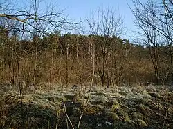 The terrain surrounding Kunersdorf suited itself better to defense than offense. Between the Frankfurt dam, a long earthen bulwark that helped to contain the Oder river, and to the north of Kunersdorf itself stretched a 3 km (2 mi) line of knolls; Judenberge (Jews Hill), Mühlberge (Mill Hill) and Walkberge (also spelled Walckberge). None was more than 30 m (98 ft) high. The hillocks were steeper on the north side than the south, but bounded by a marshy, boggy meadow called the Elsbusch, or the Alder wasteland. East of Kunersdorf and the Walkberge, the Hühner Fliess (Fliess means running water) was joined by another stream that tumbled between two more hillocks. Past the Walkberge and beyond the Hühner stood two more promontories at Trettin.[24]