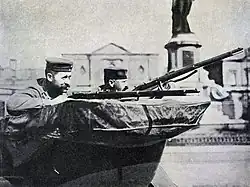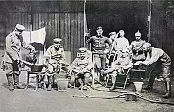 The forts could communicate with the outside by telephone and telegraph but the wires were not buried. Smaller fortifications and trench lines in the gaps between the forts had been planned by Brialmont but had not been built. The fortress troops were not at full strength and many men were drawn from local guard units, who had received minimal training due to the reorganisation of the Belgian army begun in 1911, which was not scheduled to be complete until 1926.[13] The forts also had c. 26,000 soldiers and 72 field guns of the 3rd Infantry Division and 15th Infantry Brigade to defend the gaps between forts, c. 6,000 fortress troops and members of the paramilitary Garde Civique, equipped with rifles and machine-guns.[14] The garrison of c. 32,000 men and 280 guns was insufficient to man the forts and field fortifications. In early August 1914, the garrison commander was unsure of the troops which he would have at his disposal, since until 6 August, it was possible that all of the Belgian army would advance towards the Meuse.[10]