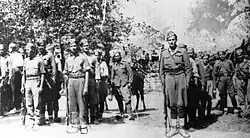 Once the battle ended, civilians burst into Meligalas and an unchecked plunder and massacre,[91] by a multitude of relatives of the Battalionists' victims who sought revenge,[92] ensued.[91] According to a contemporary report preserved in the archives of the Communist Party of Greece (KKE), these were inhabitants of the village of Skala, which had been torched by the German army.[93] Among the captive Battalionists held in the bedesten, Velouchiotis—who arrived at Meligalas shortly after the end of the battle with his personal escort[46]—recognized a gendarme whom he had previously arrested and then released, and ordered his execution.[94] The first reprisal wave, tacitly encouraged by ELAS through the deliberately loose guarding of its captives,[95] was followed by a series of organized executions.[17][94]