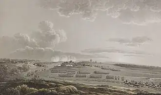 The 4,500-man Prussian garrison of Graudenz (Grudziądz), under General of Infantry Wilhelm René de l'Homme de Courbière, had been besieged by General of Division Marie François Rouyer and a force of Hessians.[35] At L'Estocq's approach, Rouyer raised the siege, allowing the Prussians to restock the garrison's food supplies on 31 January.[36] This timely intervention allowed the garrison to resist the enemy besiegers until the end of the war.[35] A Russian advance guard under General Pyotr Bagration linked L'Estocq and Bennigsen's main force, which was centered on Mohrungen, facing south.[36]