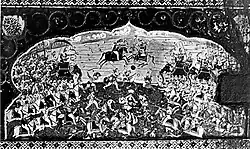 ![]() Fresco in Jammu depicting Akali Phula Singh and his Akali-Nihang warriors giving a last stand to Afghan Ghazi warriors in the Battle of Nowshera | |||||||||