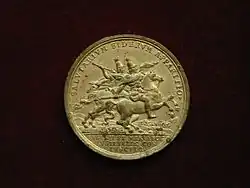 At the same time, the Dutch cavalry under the Count of Tilly cut off the French retreat route to Kortrijk.[15] Much of the French army was routed or captured, with lack of daylight preventing the completion of the manoeuvre.[3][5][6] The battle also ended in confusion for the Allies. The darkness caused their right and left wings to mistake each other for the enemy and they began firing at each other. Eugene on the right and the Prince of Orange on the left managed, through their intervention, to stop the firing and prevented the army from doing any real damage to itself.[16]