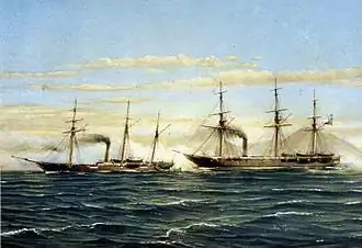 The Naval Battle of Papudo was a naval engagement fought between Spanish and Chilean forces on November 26, 1865, during the Chincha Islands War. It was fought 55 miles (48 nmi; 89 km) north of Valparaiso, Chile, near the coastal town of Papudo.
