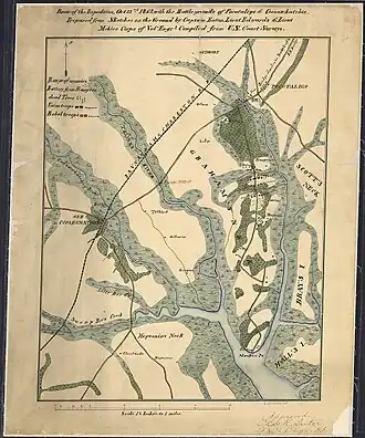 Under protection of this Naval Squadron, Brannan's Division steamed up the Broad River, and disembarked the next morning at Mackey Point (between the Pocotaligo and Coosawhatchie Rivers), less than ten miles from the Charleston & Savannah railroad.[1] The 47th and 55th Pennsylvania Infantry Regiments,[11] under Colonel Tilghman H. Good's command, began the march toward Pocotaligo.[12] A smaller detachment of 300 men – two companies of engineers and the 48th New York regiment was ordered up the Coosawhatchie River to destroy the bridge at Coosawhatchie and then tear up the rails as they advanced on Pocotaligo.[1][3]