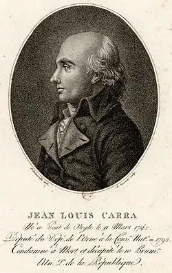 The fugitives traversed the municipalities of Saint-Vincent-Sterlanges and Chantonnay, subsequently reaching Sainte-Hermine between 3 and 4 am.[6][7][18] There, representatives Niou and Trullard were joined by their colleagues Pierre-Jean-Baptiste Auguis and Jean-Louis Carra, who had proceeded from Fontenay-le-Comte.[18][40] Marcé arrived in Sainte-Hermine at 6 a.m. and was promptly dismissed by the representatives on mission.[41][18] The officers were unable to rally their men, and the flight resumed the following morning, only stopping at La Rochelle.[6][7] The first fugitives reached the city on March 20 at 5 am.[41] The four representatives on mission arrived at approximately 8 or 9 pm.[41][25] Marcé followed shortly after[25] and was among the last to return.[6][7] Other soldiers retreated to Niort.[6]