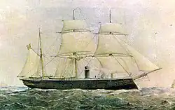 Captain Carlos Condell of the Covadonga realized that the quicker but heavier Independencia had a deeper draft than his schooner, the reason why he decided to run south very close to the coast, risking to run his ship aground. With Independencia in pursuit, both ships exchanged fire. The Independencia's lack of trained gunners and the Covadonga's accurate sniper fire prolonged the chase for over three hours. Chilean-Mapuche sniper Juan Bravo was hailed after the battle for taking down numerous Peruvians.[3] Captain More of the Independencia, tired because of the prolonged pursuit, lost his temper and patience, deciding to take a riskier approach and ram the Chilean ship. Constantly sounding the depth, he attempted to do so twice, only to have to call off the attack when approaching the shallows. Close to Punta Gruesa, a shallow cove, Covadonga scraped and barely cleared a reef. The Independencia, attempting to ram for a third time, struck the obstacle and immediately took on water while listing to starboard. The Covadonga then turned around and opened fire, while Independencia's crew returned fire[2] and tried to float her off the reef.
