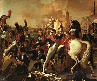 ![]() Marshal Lannes leads the storming of the citadel at the Battle of Ratisbon, as painted by Charles Thévenin. | |||||||