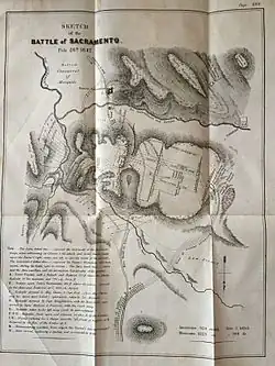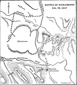 The Battle of Sacramento, or the battle of the Sacramento River, took place on February 28, 1847, during the Mexican–American War. About fifteen miles (24 km) north of Chihuahua, Mexico, at the crossing of the Sacramento River, American forces numbering less than 1,000 defeated the superior Mexican army.[3]: 153