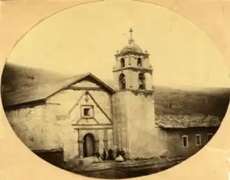 During the siege, the Mission's thick stone and adobe walls protected Castañeda’s forces, and there is no record of any losses among Castañeda's men.[20][13] Early in the battle, one of Castro’s men, Aquilino Ramirez, was killed by a shot from a rifleman stationed in the Mission's church tower.[18][21] Ramirez was a father of seven from Santa Barbara, and his death led his comrades-in-arms to direct a furious cannonade at the church.[22]