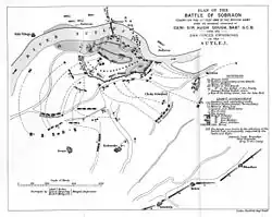 Two British divisions under Harry Smith[5] and Major General Sir Walter Gilbert made feint attacks on the Sikh left, while another division under Major General Robert Henry Dick made the main attack on the Sikh right, where the defences were of soft sand and were lower and weaker than the rest of the line. (It is believed that Lal Singh had supplied this information to Major Henry Lawrence, the Political Agent at Gough's headquarters.) Nevertheless, Dick's division was driven back by Sikh counter-attacks after initially gaining footholds within the Sikh lines. Dick himself was killed. As the British fell back, some frenzied Sikh soldiers attacked British wounded left in the ditch in front of the entrenchments, enraging the British soldiers.