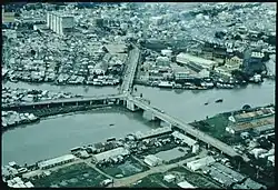 Under orders from Hay, the 9th Infantry Division sent Company C, 5th Battalion, 60th Infantry Regiment, up Highway 4 and then east along Route 232, a two-lane road that ran along the southern edge of the city. The road passed through the Eighth District, a Catholic working-class slum that in recent years had sprouted along the southern edge of the Doi Canal. The mechanized unit, commanded by Captain Edmund Scarborough, parked its M113 armored personnel carriers (APCs) at two of the three bridges that spanned the Doi Canal. Scarborough set up his headquarters near the Tung Tien Vuong Bridge (10°44′28″N 106°39′22″E / 10.741°N 106.656°E), situated approximately three kilometers due south of the Phú Thọ racetrack. It was also known as the 5A Bridge because Route 5A entered the city at that point. Four kilometers to the east was the Y Bridge (10°45′00″N 106°40′59″E / 10.75°N 106.683°E), so named because it resembled that letter when viewed from above. Scarborough sent his 1st Platoon to guard that span. Another four kilometers beyond that lay the Tan Thuan Bridge (10°45′18″N 106°43′12″E / 10.755°N 106.72°E), but for the moment that remained under the protection of South Vietnamese Marines.[1]: 575