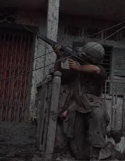 After ARVN troops established a blocking position on the east side of Cầu Mật, the US soldiers began working their way among the ramshackle buildings and narrow streets on the western side of Cầu Mật. Many already knew something about urban combat; Company A had fought in the Tet Offensive battle of Cholon and Phu Tho Racetrack. The advance was slow and methodical. In the confusing warren of houses and alleyways, there was always a risk that the VC could sneak through the cordon and double back for a surprise rear attack. The Americans also had to be discriminating in their use of fire because the hamlet was still full of civilians. Air and artillery strikes were ruled out for the same reason. As a result, most of the fighting took place at close range with small arms, grenades, and machine guns. By evening, Company A had killed several dozen VC while losing two killed and 47 wounded. Much of Cầu Mật still remained in VC hands.[1]: 577