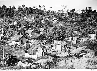 By 13 January, the Sakaguchi Detachment had rounded up all prisoners and captured materials, and handed over the administrative matters to the Navy the following day.[32] The oil facilities at Tarakan by then had been substantially destroyed. In Lingkas, even though much of the oil had in large part been consumed by fire, there was still 12,300 tons of heavy oil left in the surviving tanks, and 120 drums of heavy oil.[33] By June 1942, the wells had been repaired and the oil production continued without any serious hindrance until mid-August 1943, when the first Allied air raids on Tarakan began.[34]