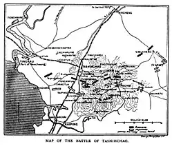 The Battle of Tashihchiao (大石橋の戦い, Taisekihashi no Tatakai) was a land engagement fought on 24–25 July 1904, during the Imperial Japanese Army's advance toward Liaoyang in first stage of the Russo-Japanese War. Tashihchiao (pinyin: Dashiqiao) is located about 25 kilometres (16 mi) southwest of the city of Haicheng, in present-day Liaoning Province, China.[1] The town of Tashihchiao was of strategic importance in the Russo-Japanese War, as it was a railroad junction between the main line on the Russian South Manchurian Railway and a spur which led to the old treaty port of Yingkou (Newchwang). Control of both was essential for further advances by Japanese forces towards Liaoyang and Mukden.