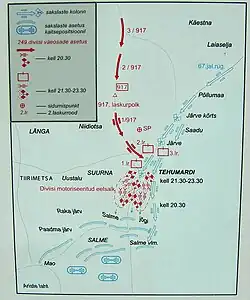 The Battle of Tehumardi (Estonian: Tehumardi öölahing, Russian: Бой у Техумарди, German Schlacht von Tehumardi) was a battle on October 8, 1944 related to the Moonsund Operation during World War II. Soviet soldiers fought German troops occupying Tehumardi. It was one of the most brutal engagements during the fighting on the Estonian island of Saaremaa (Oesel) in 1944.